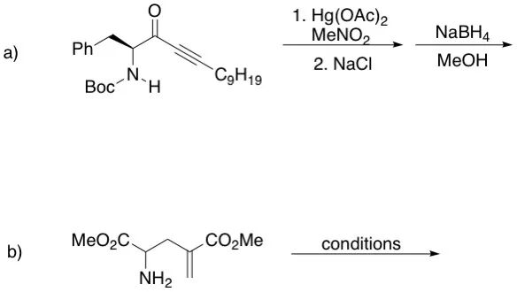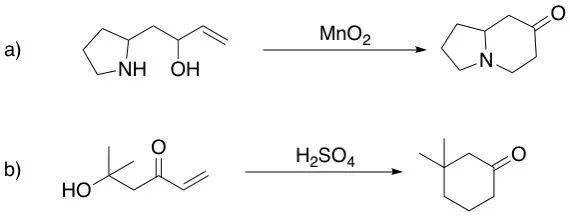 a) A 4-exo-trig ring closure reaction b) A 6-endo-dig ring closure reaction